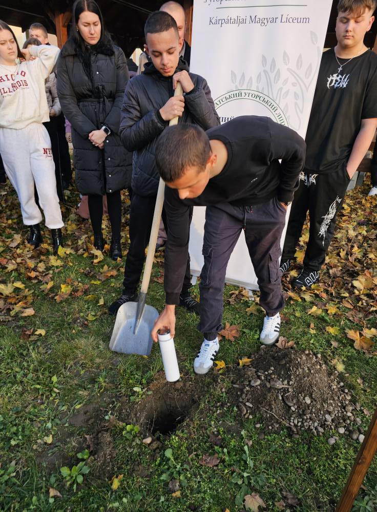 A kapszulákat közösen helyeztük el az iskola udvarán, egy emléktáblával megjelölve, hogy idővel osztálytalálkozókor megtalálhassák őket.![]()