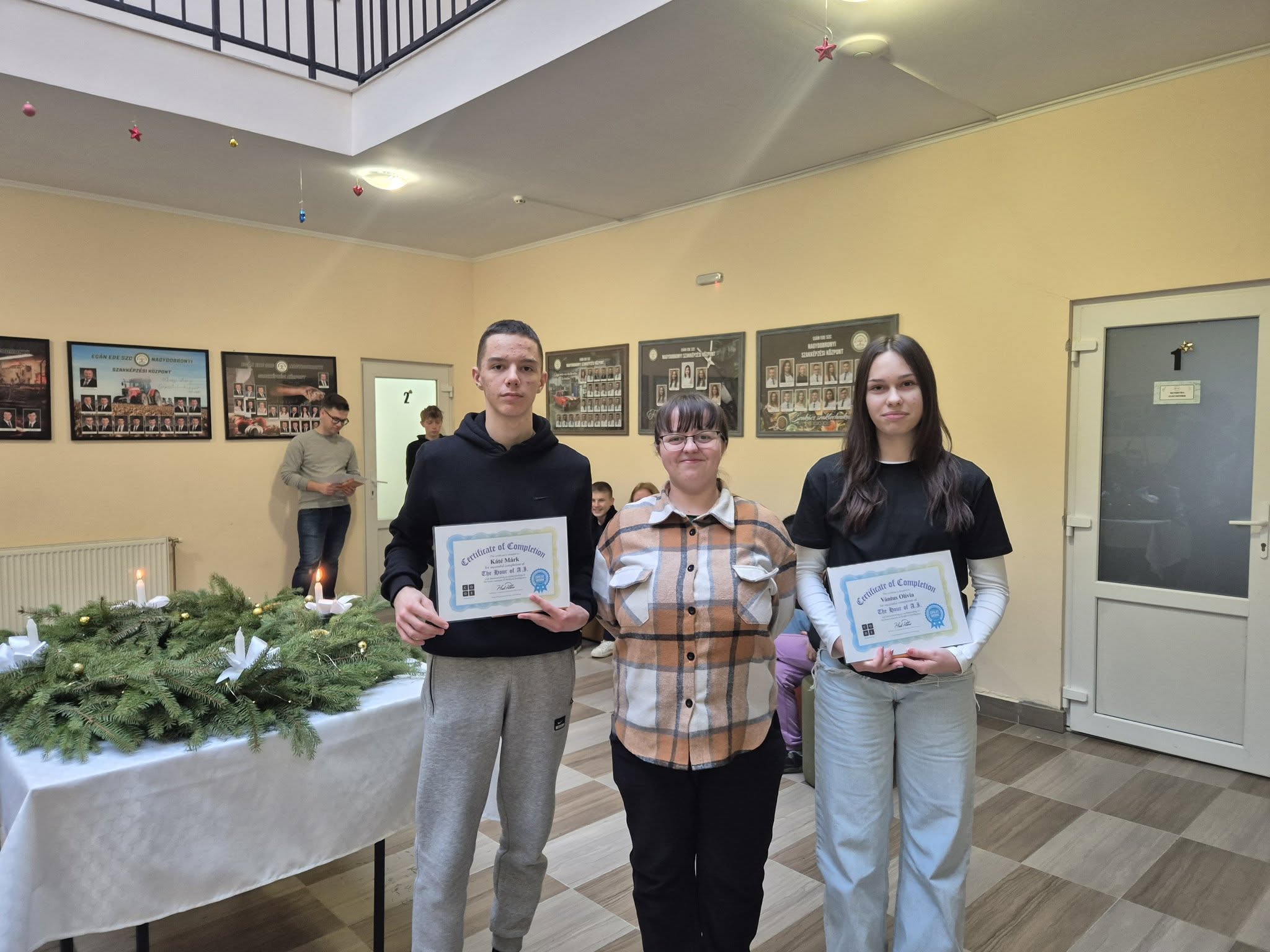 Diákjaink lelkesen, eredményesen alkottak összesen közel 1000 sor kódot megírva. A mai napon pedig átadásra kerültek a legtöbbet kódolók oklevelei.