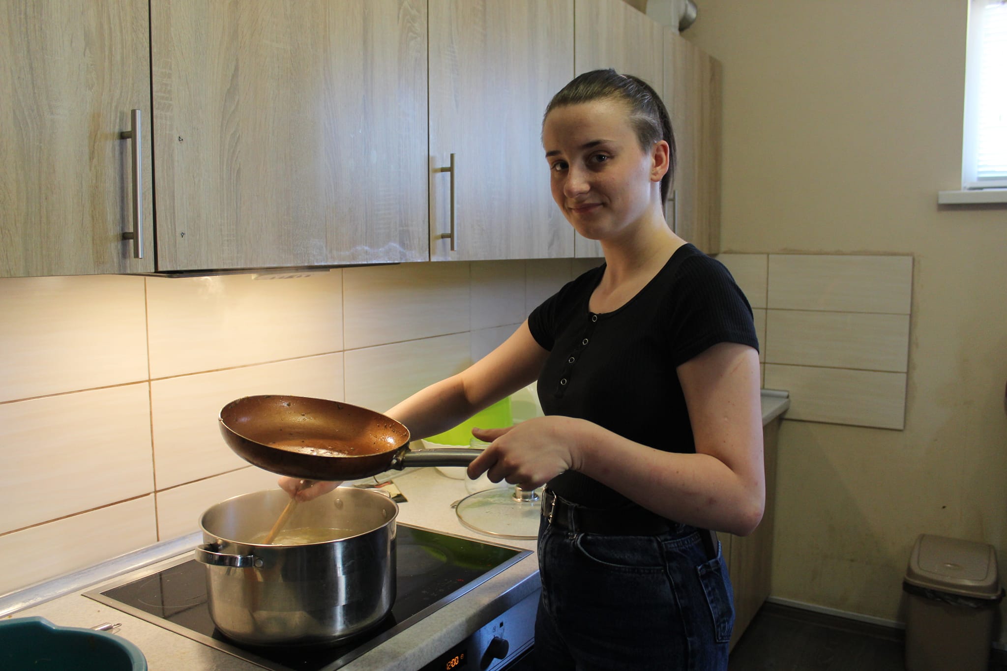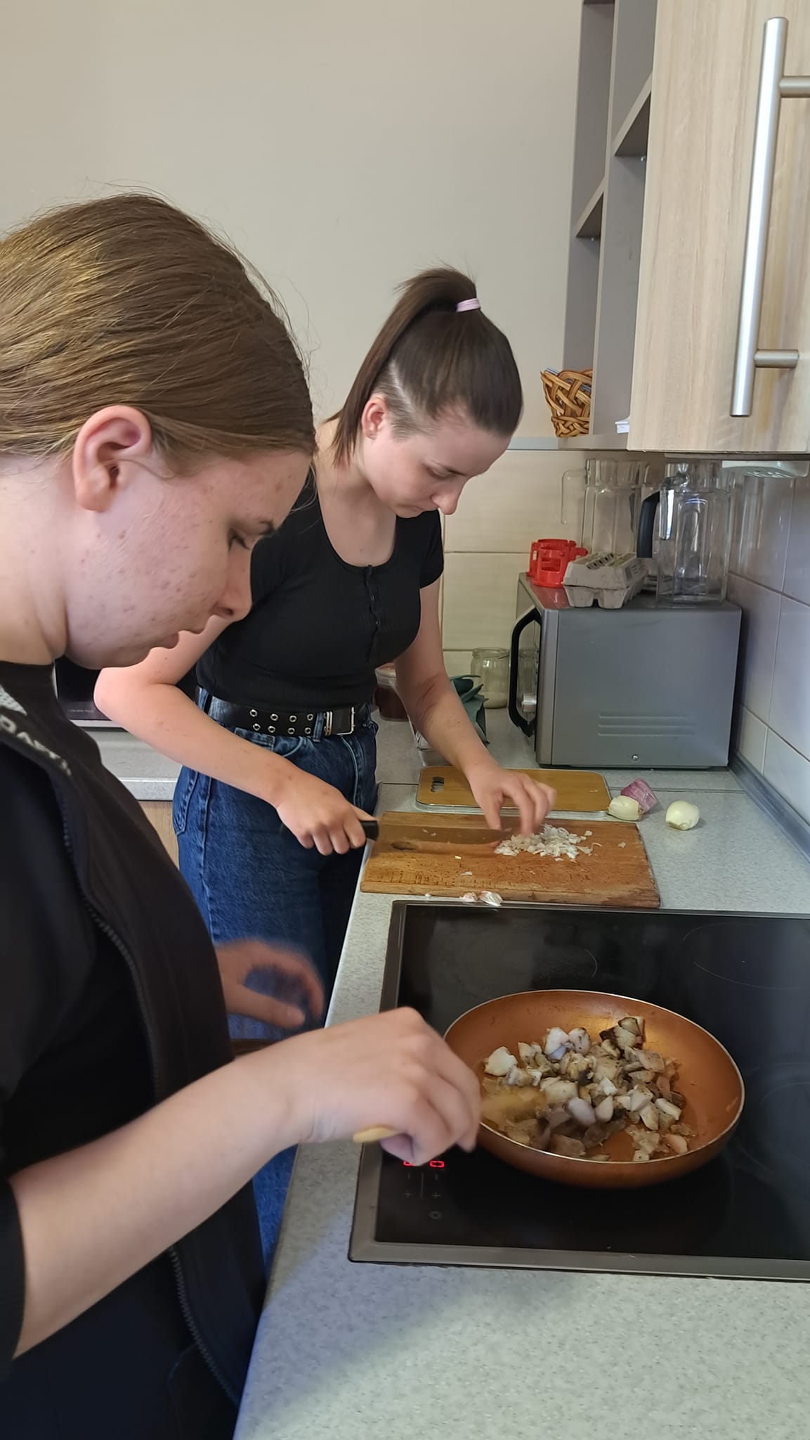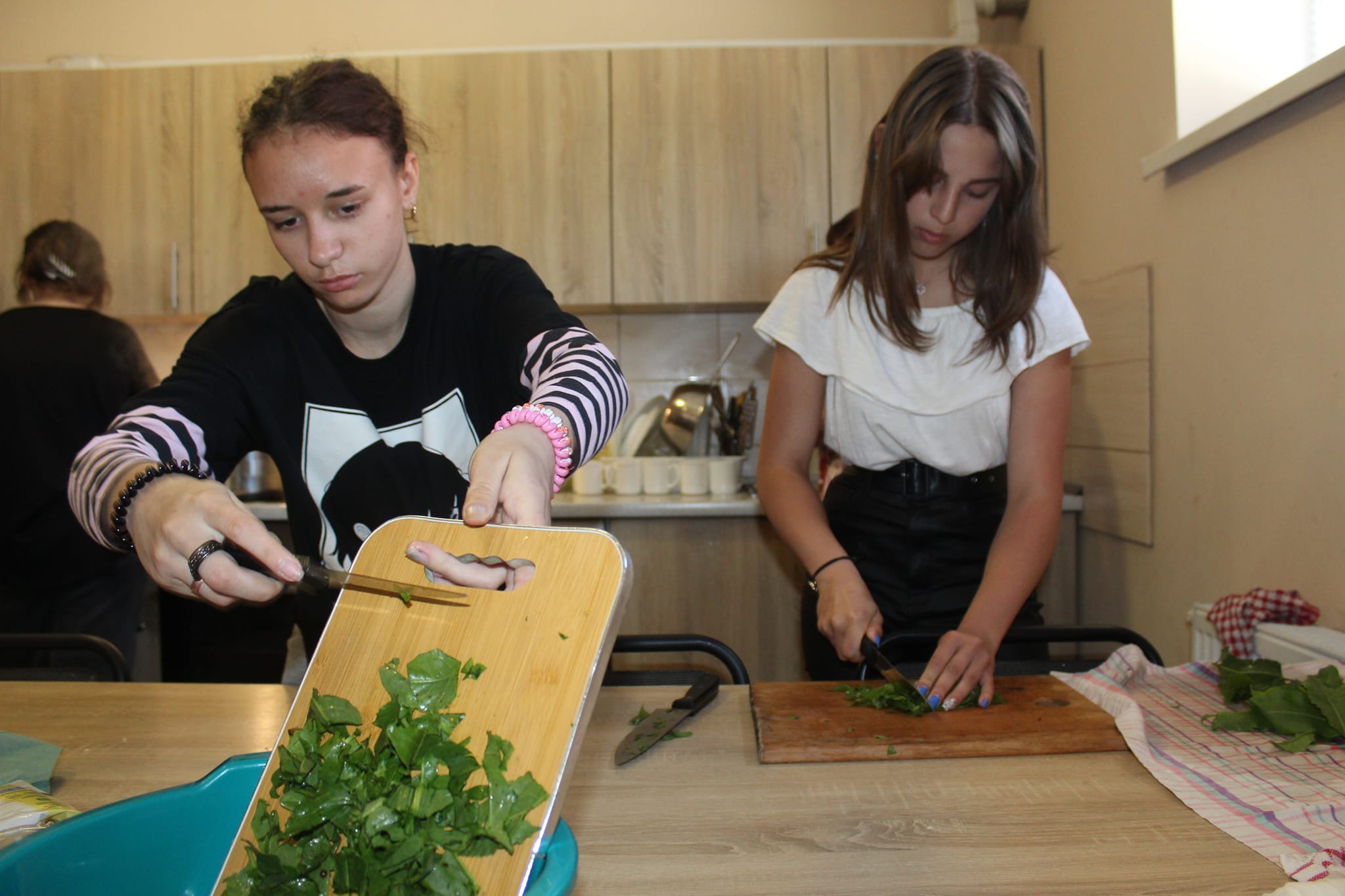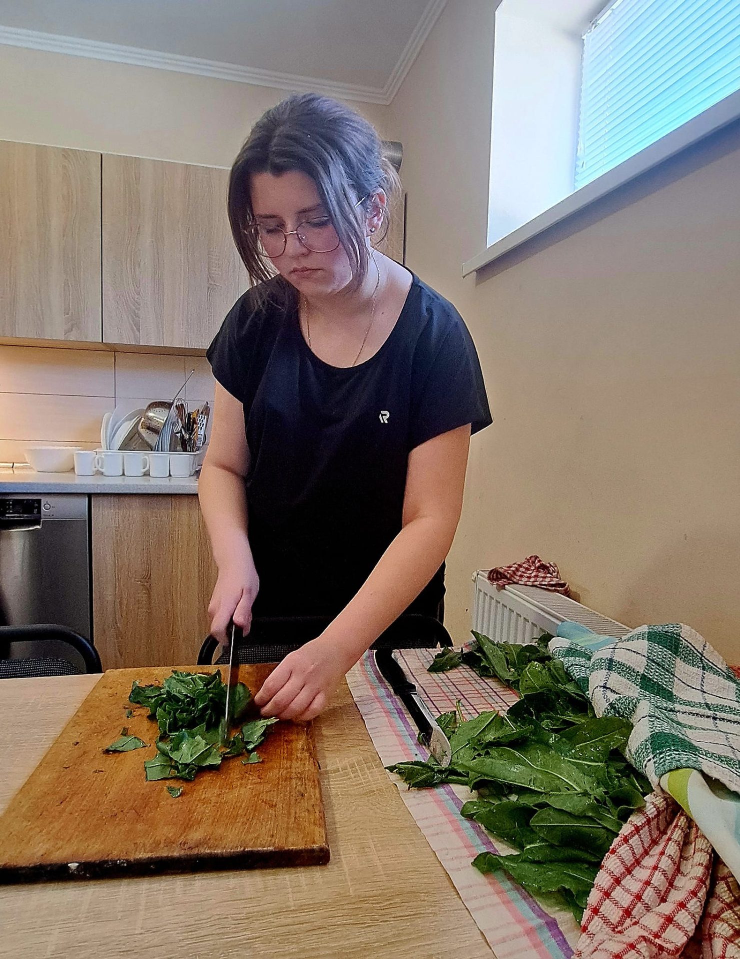 A szakács profilórákon most a szezonális ételeké a főszerep. Ma sóskaleves készült. A legfontosabb hozzávalót, a sóskát, a tanulók frissen szedték az erdő szélén.