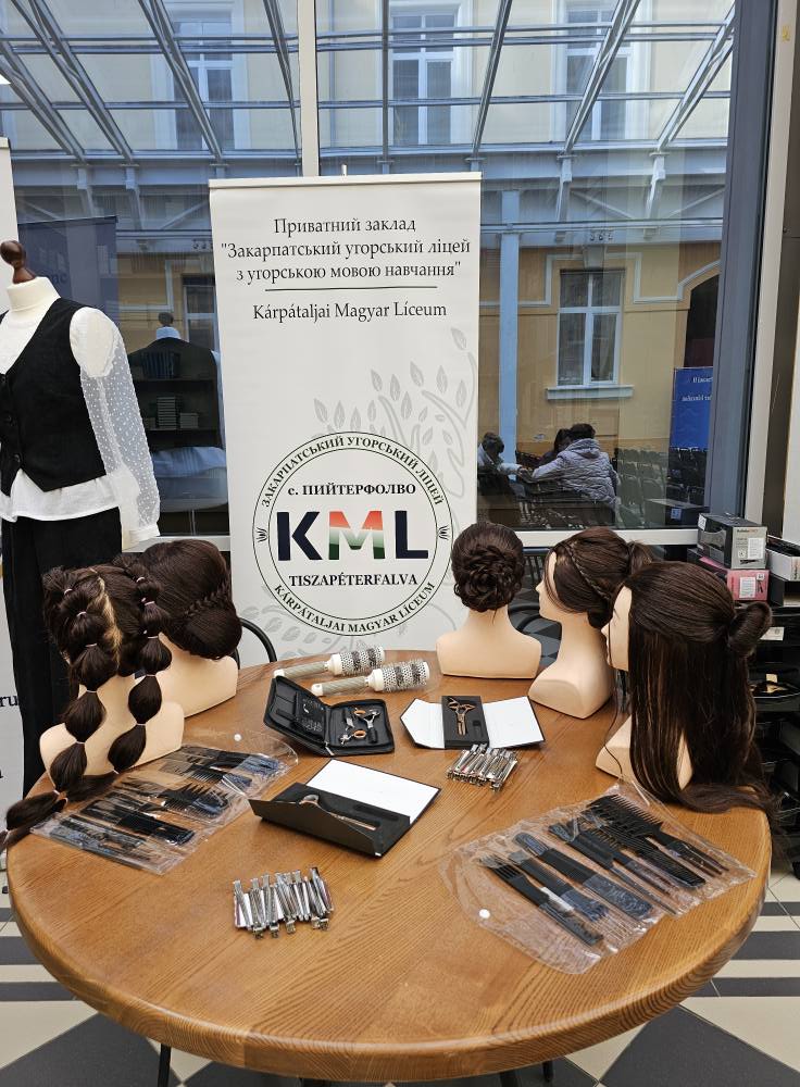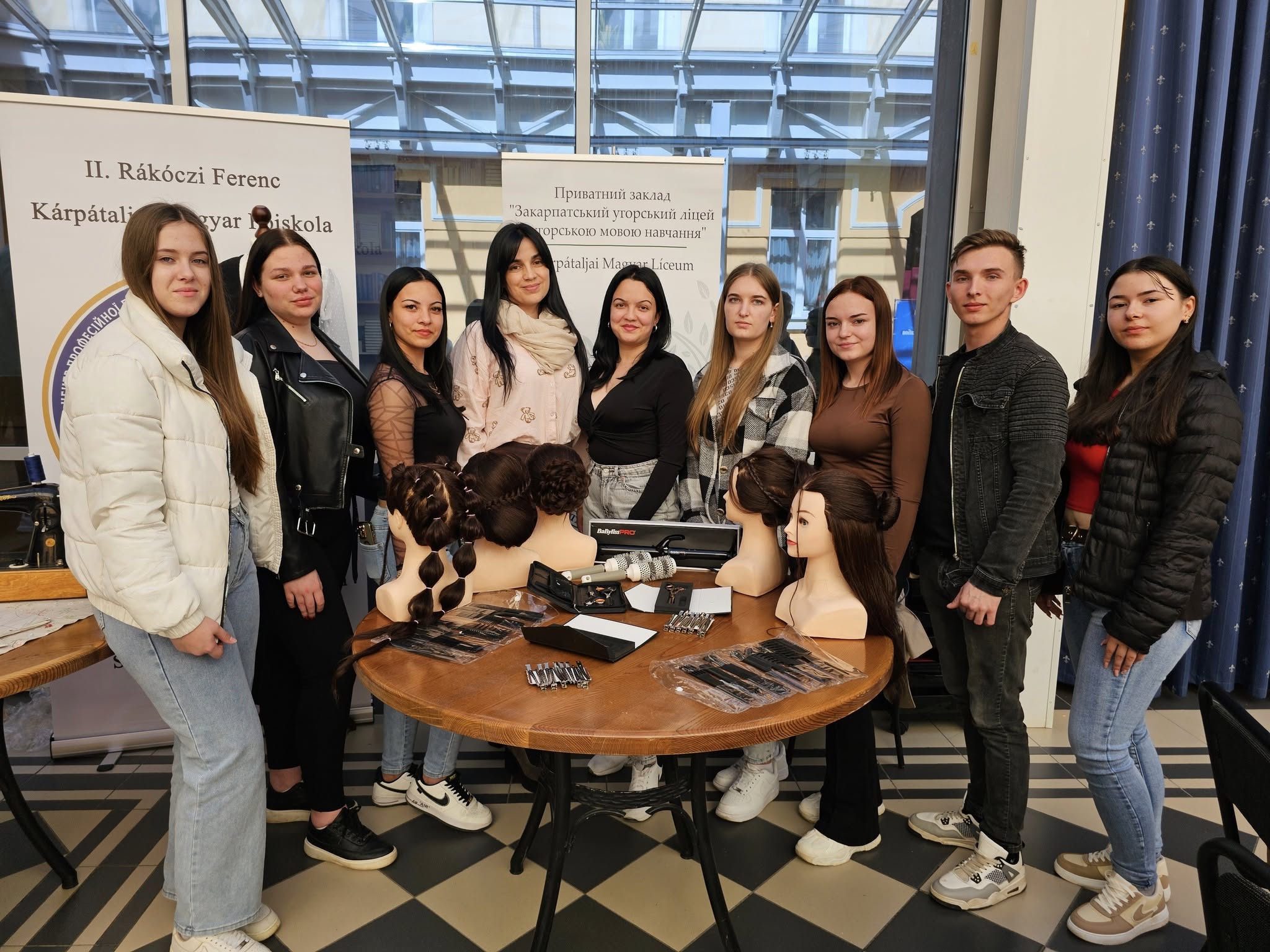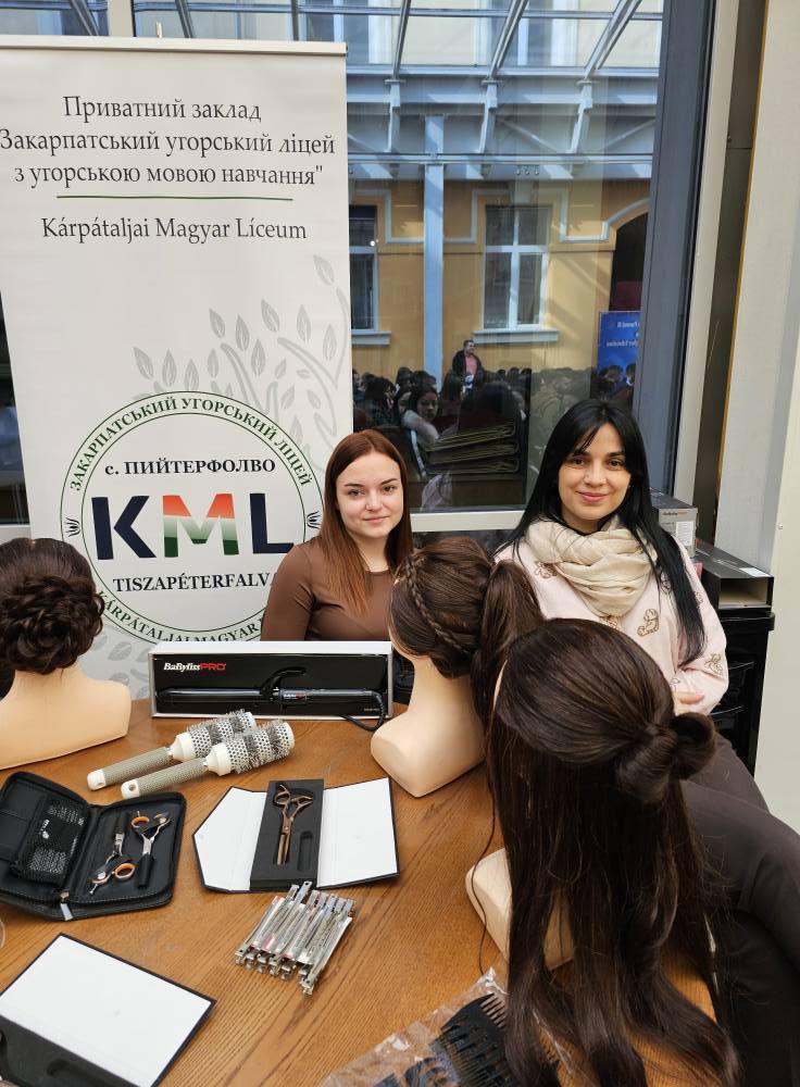 A KML tiszapéterfalvai oktatási helyszínének szépészet profilt tanuló 11. osztályos diákjaink munkái kiállításra kerültek a II. Rákóczi Ferenc Kárpátaljai Magyar Főiskola – Karrierkövetési Osztály és az Öregdiák Szövetség által szervezett Karriernap és Öregdiák Expo rendezvényen. A bemutatón diákjaink által készített alkalmi frizurákat s az ehhez szükséges eszközöket tekinthették meg az érdeklődők.![]()