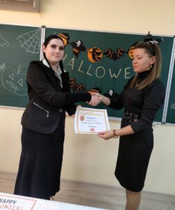 В ліцеї відбувся незвичайний урок англійської мови, під час якого учні 11-А класу взяли участь у веселому конкурсі на тему Хелловіна. Учні класу в складі команд з декількох осіб змагалися у своїх знаннях з даної теми. Завдання конкурсу були пов’язані з історією та традиціями Хелловіна. Атмосферу підняли більш підприємливі учні, які одягли свої улюблені костюми на Хелловін, за що журі нагородило їх сертифікатами.