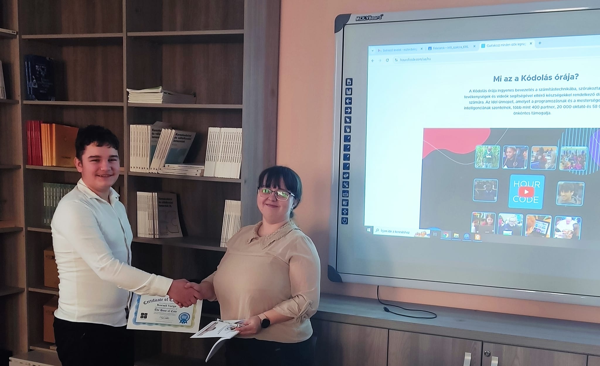 4 грудня 2023 року учні нашого ліцею, які навчаються за профільним спрямуванням “Комп’ютерна інженерія”, разом із кафедрою математики та інформатики Закарпатського угорського інституту ім. Ференца Ракоці ІІ долучилися до міжнародної освітньої ініціативи “Година коду”. Під час заходу учні в ігровій формі вивчали основи програмування. Сьогодні відбулося вручення сертифікатів учасникам.