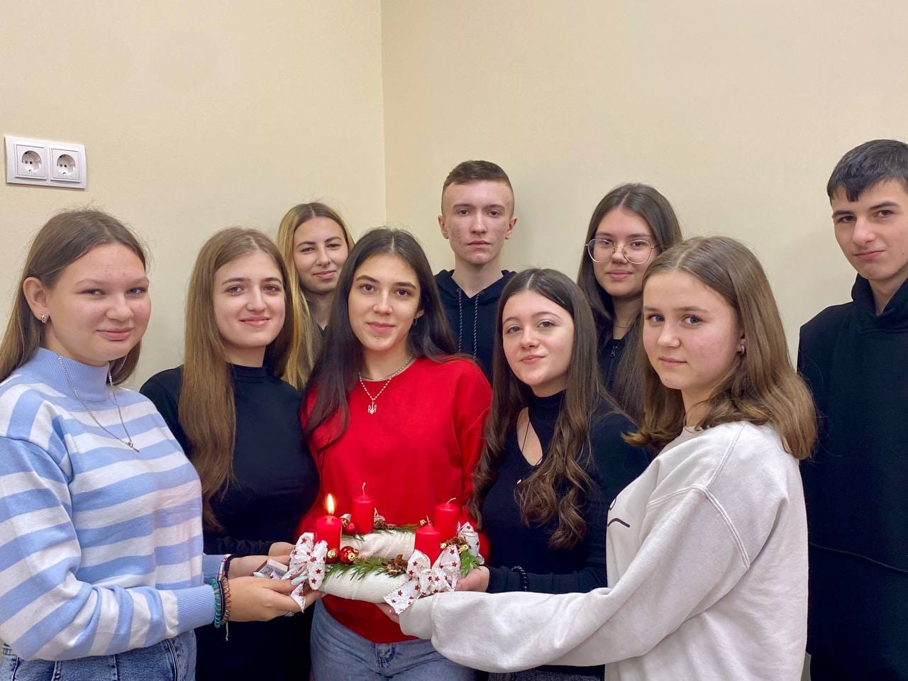 Студенти відділення KML Виноградова разом виготовили свій різдвяний вінок. Прикраса на двері також була зроблена вручну!