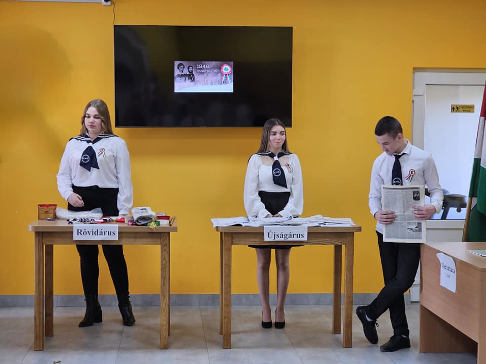Ми відзначили події 15 березня 1848 року в Тісапетерфальвані короткометражним фільмом, виставою та народним танцем. Для початку короткий фільм дав нам можливість озирнутися назад і згадати, потім наші студенти представили нам виставу про основні моменти революції 1848/49 років і боротьби за свободу, після чого ми завершили наше свято вербунком.