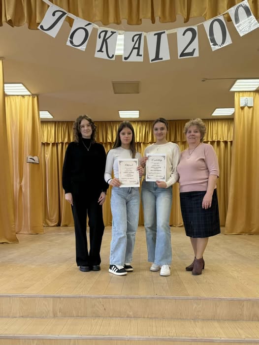 «Jókai 200», спільно організованому місцевою організацією КМКC. У конкурсі учні змагалися у ґрунтовних і точних знаннях про життя і творчість Jókai Mór, а також про його найвідоміші романи (A kőszívű ember fiai, Az aranyember, Egy magyar nábob, Kárpáthy Zoltán).