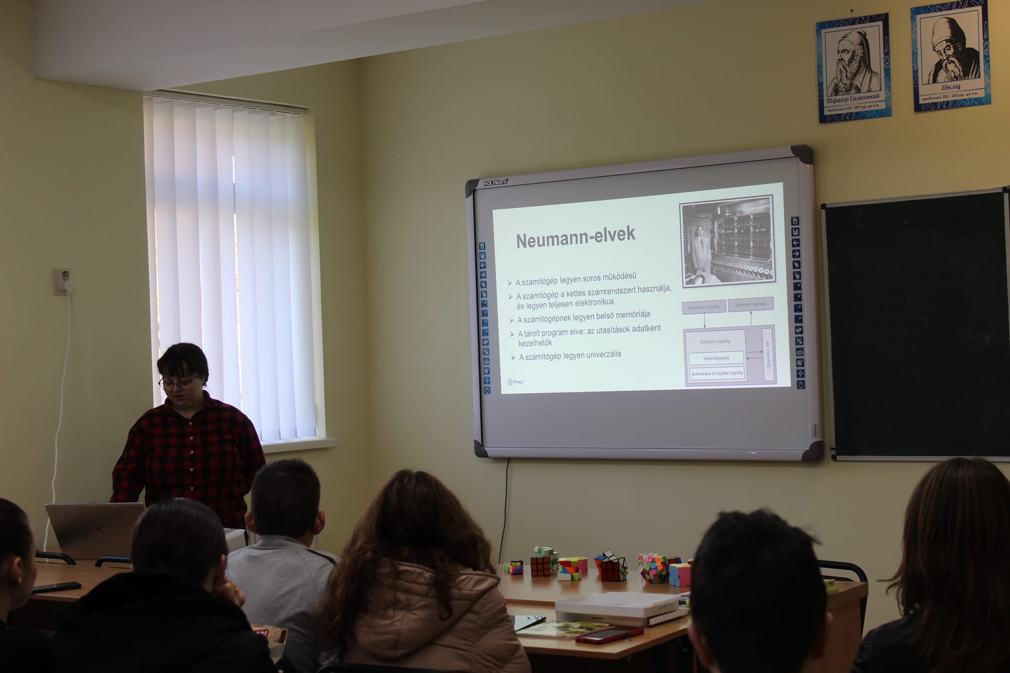 У рамках нетрадиційного уроку з природничих наук Лівія Сані П. ознайомила учнів з історією заснування та структурою Угорського товариства науковців. На заході учні дізналися про наукову діяльність закарпатських членів УАН.