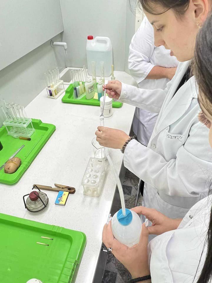 Під час сьогоднішнього уроку природничих наук ми мали можливість відвідати лабораторію кафедри біології та хімії Закарпатського угорського інституту ім. Ференца Ракоці ІІ, яку очолює доктор Золтан Чома. Під час екскурсії ми мали змогу побачити кімнати, де проводяться наукові дослідження та практичні заняття з хімії. Нам показали спеціальне та багатофункціональне обладнання, яке використовується для хімічних досліджень. Ми отримали багато цікавої інформації та уявлення про те, чим займаються студенти-хіміки та які дослідження вони проводять. Після барвистої екскурсії відбулися експерименти, які координувала асистент кафедри Крістіна Молнар, де ми змогли застосувати на практиці знання, отримані на уроках природознавства. Вона показала нам експерименти з біохімії, і ми змогли спробувати самі, як проводити досліди з крохмалем або білком. Нашим улюбленим експериментом була “смерть клейкого ведмедика”, де ми спостерігали за перетворенням сахарози в дисахарид. Це був вражаючий і захоплюючий день!