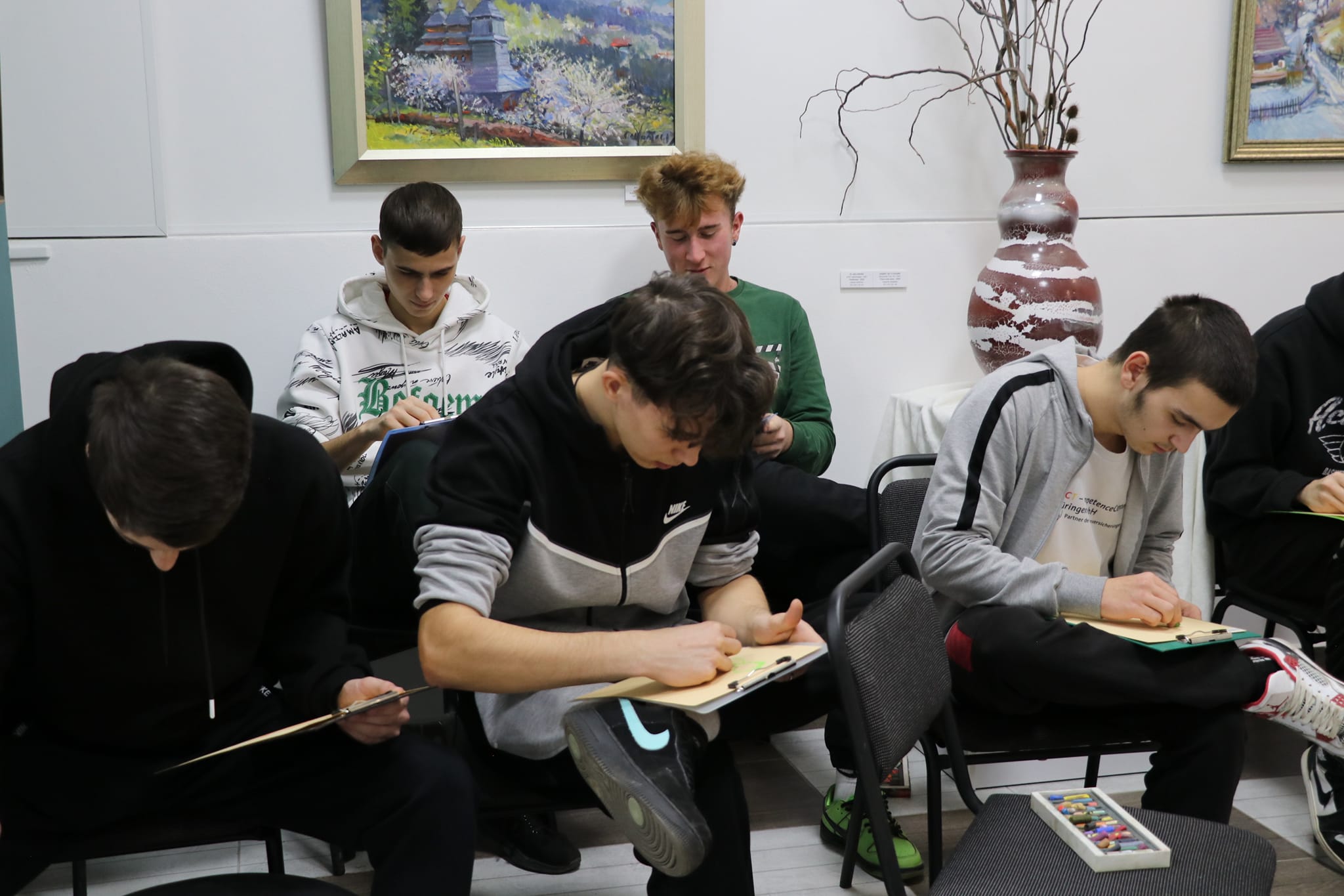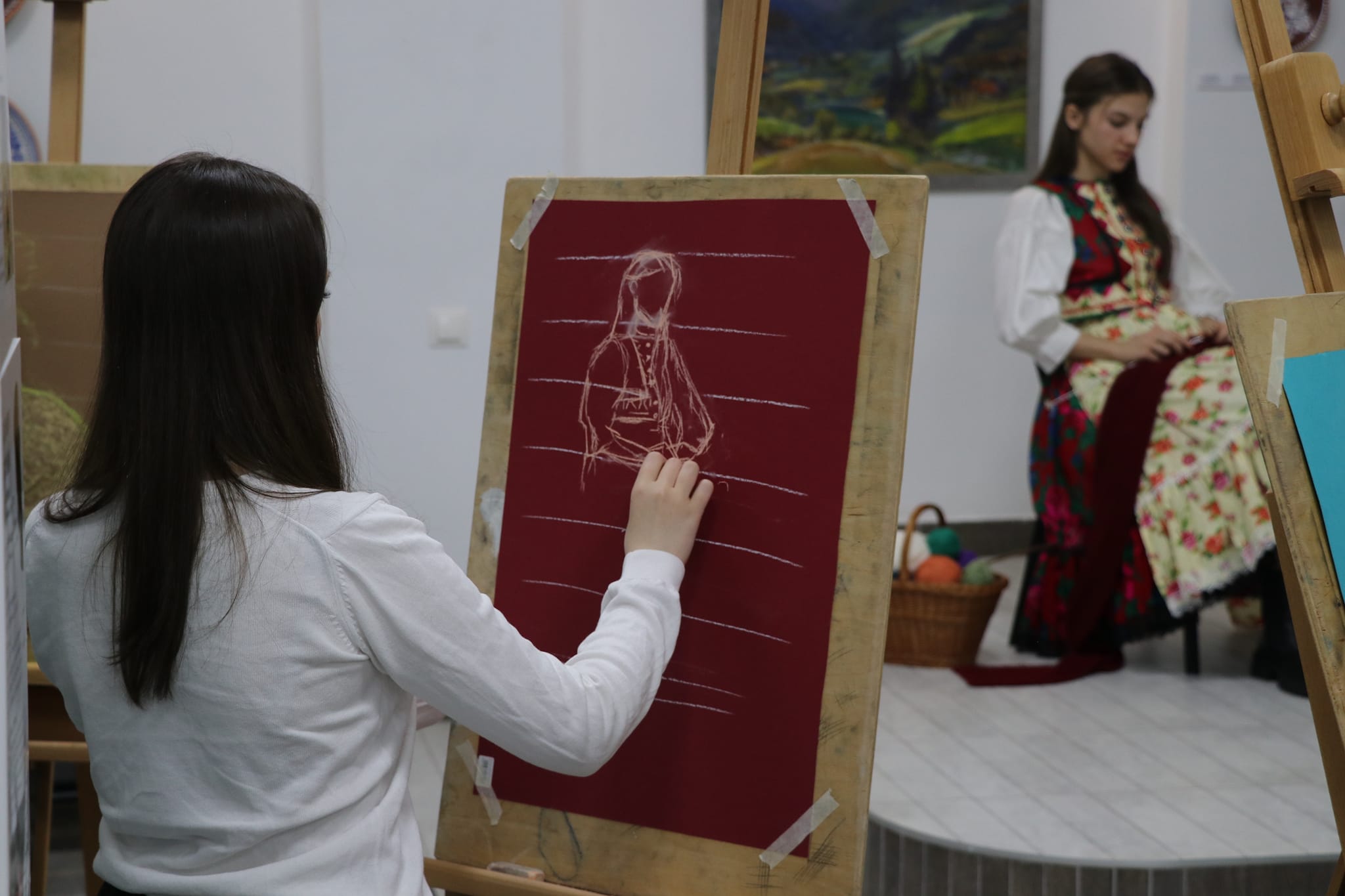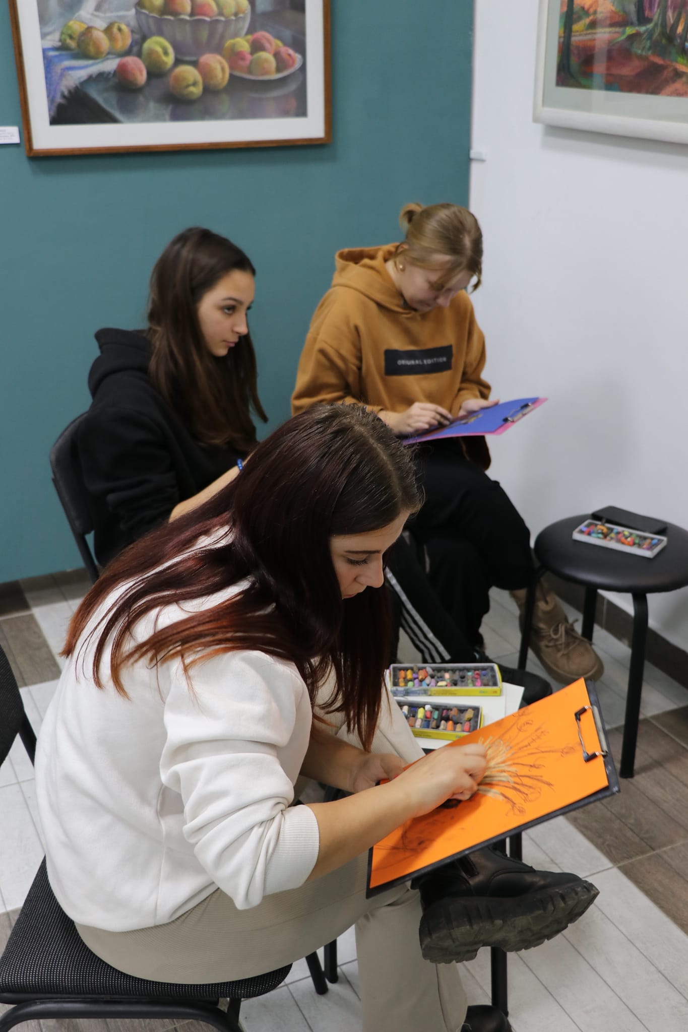 Окремо студенти мистецького профілю також створювали власні роботи. Малювання з моделі було для них новим досвідом, але вони впевнено обрали більший формат аркуша для своїх робіт і з натхненням працювали.