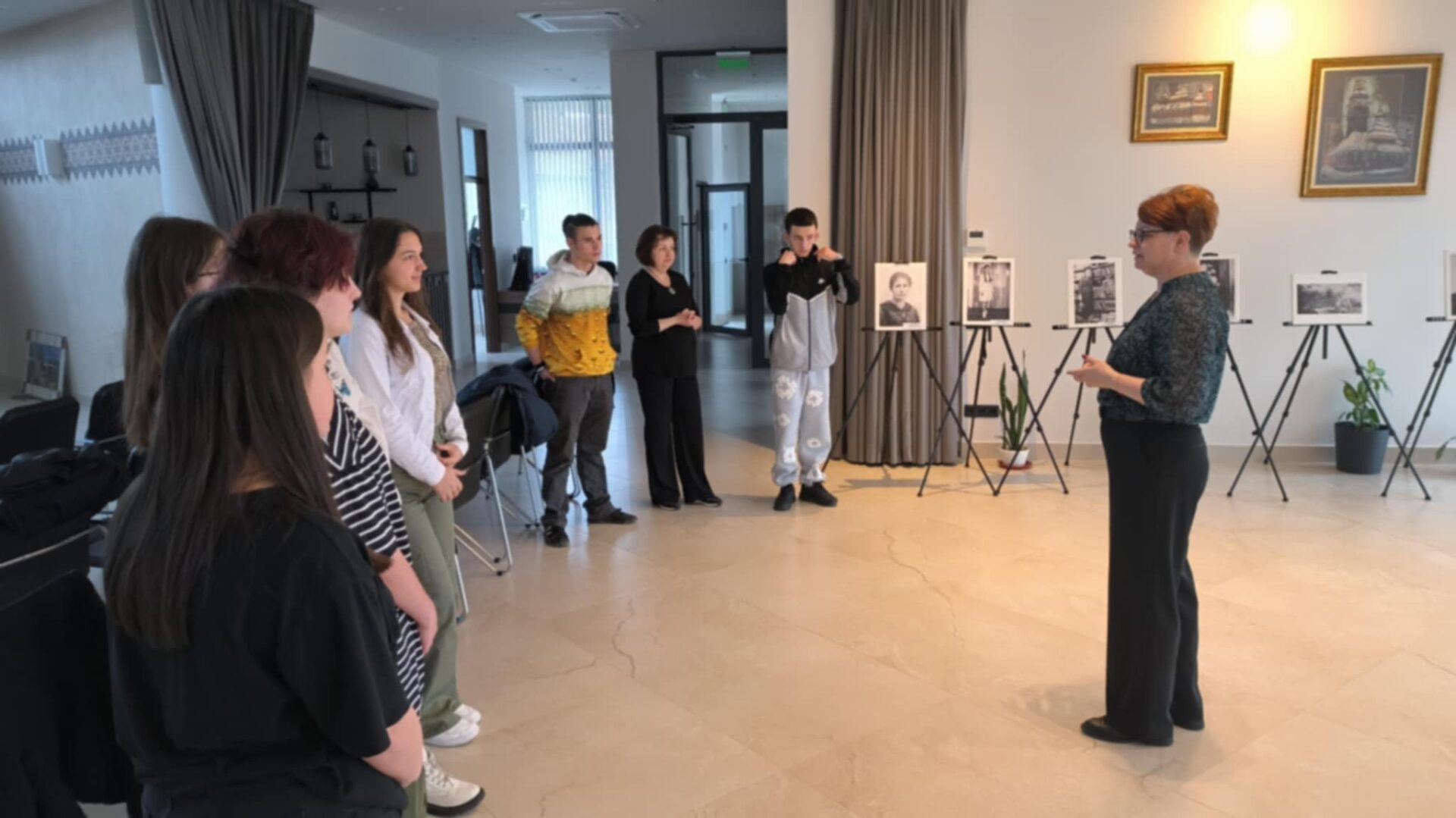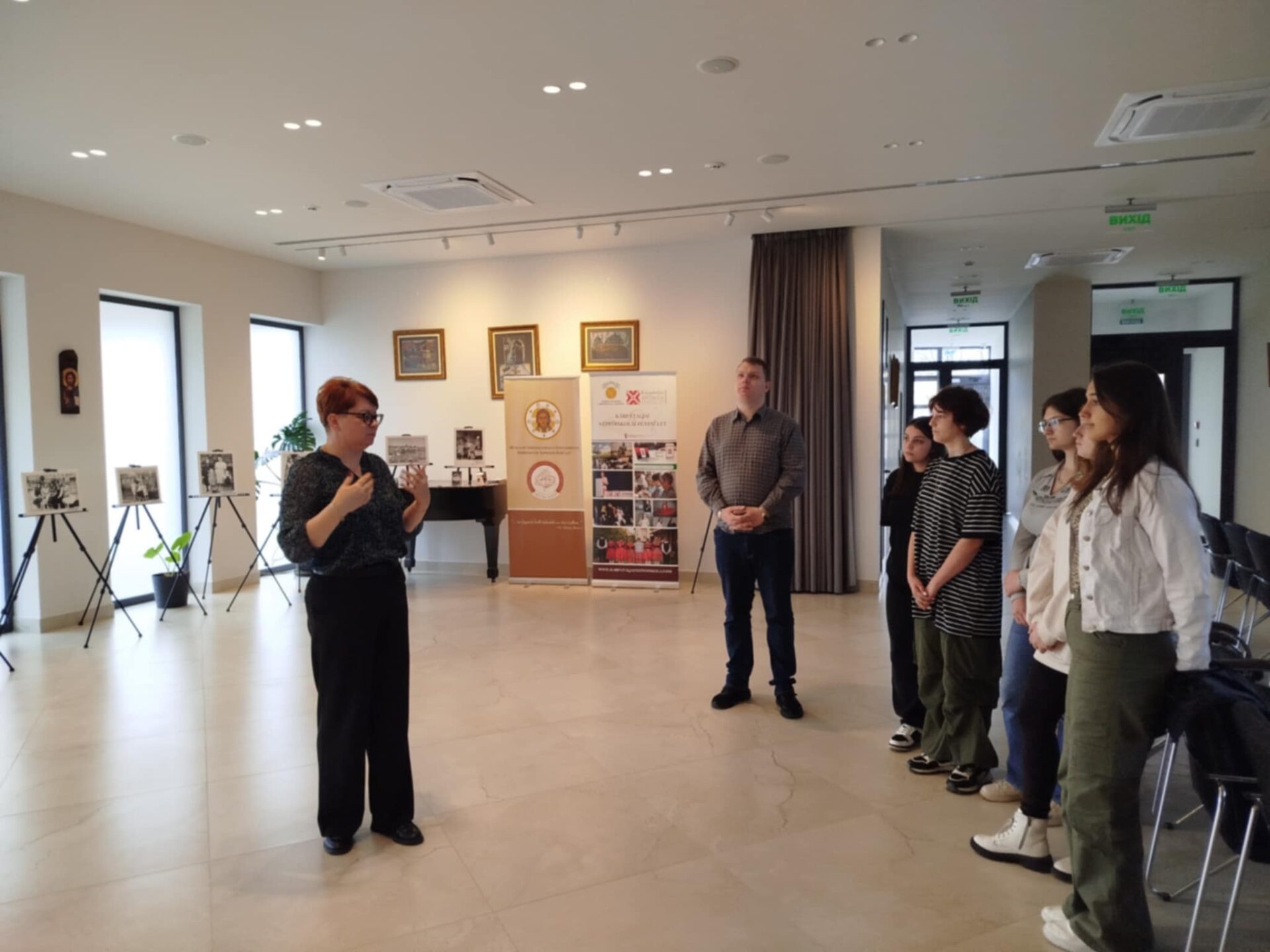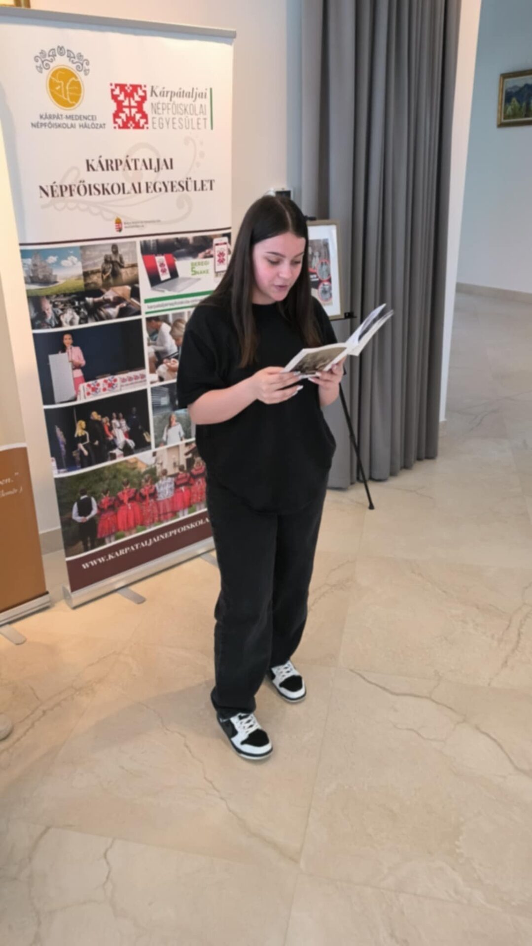 27 березня 2025 року ми поїхали з учнями 10 С профілю «Підприємництво і туризм» та відвідали центр «Ortutay Elemér Görögkatolikus Központot», де мали змогу побачити ЖІНОК У БІЛОМУ І ЧОРНОМУ, Жінку Закарпаття у 20 столітті. виставка століття. Учнів зворушили чорно-білі світлини, які оживили людські долі. Також ми мали змогу відвідати греко-католицьку бібліотеку та архів імені Бендаша Іштвана. Нас усіх захопив надзвичайний фонд бібліотеки. Ми також мали змогу оглянути компактне сховище бібліотеки. Нарешті з тераси центру перед нами відкрилася надзвичайна панорама. Дякуємо Аніті Мароші, керівнику греко-католицької бібліотеки та архіву імені Бендаша Іштвану, за надану можливість і теплий прийом.