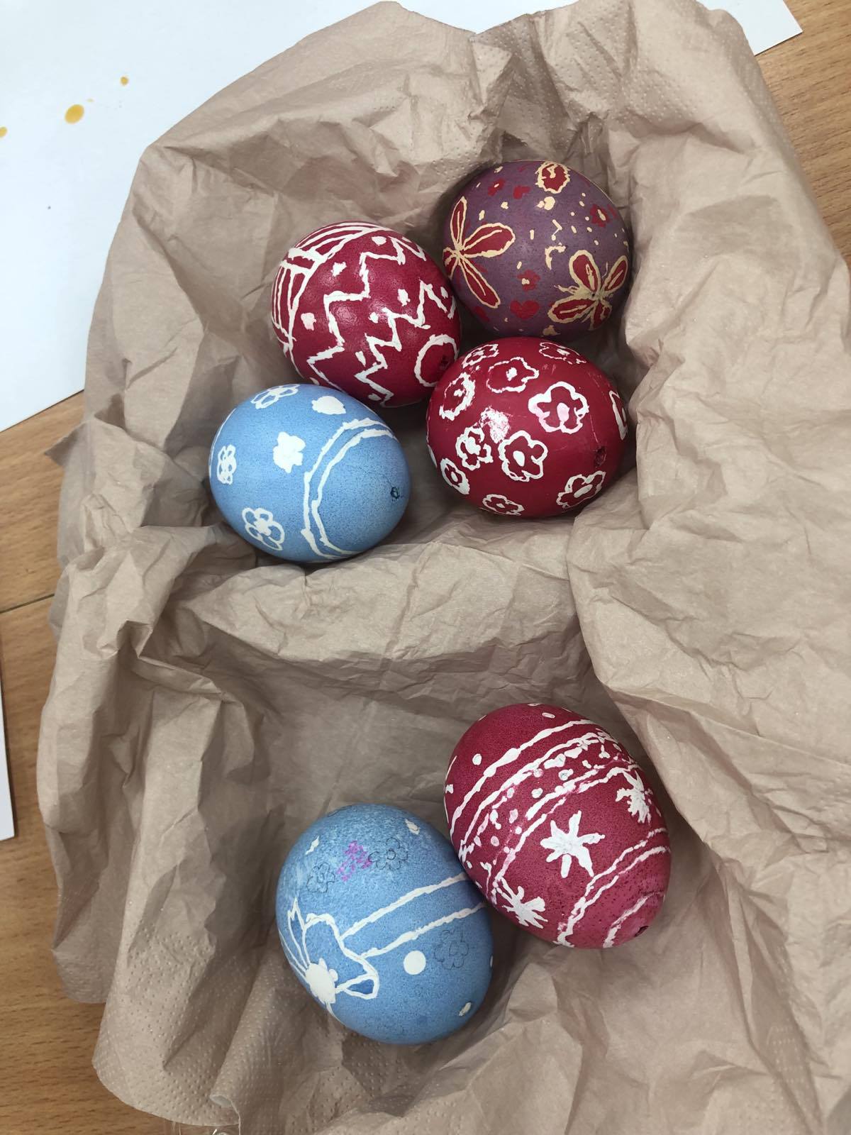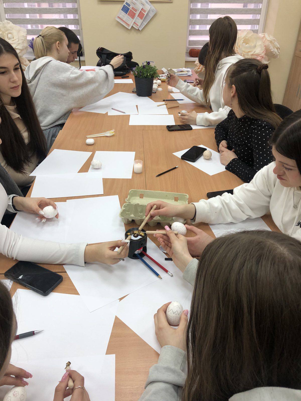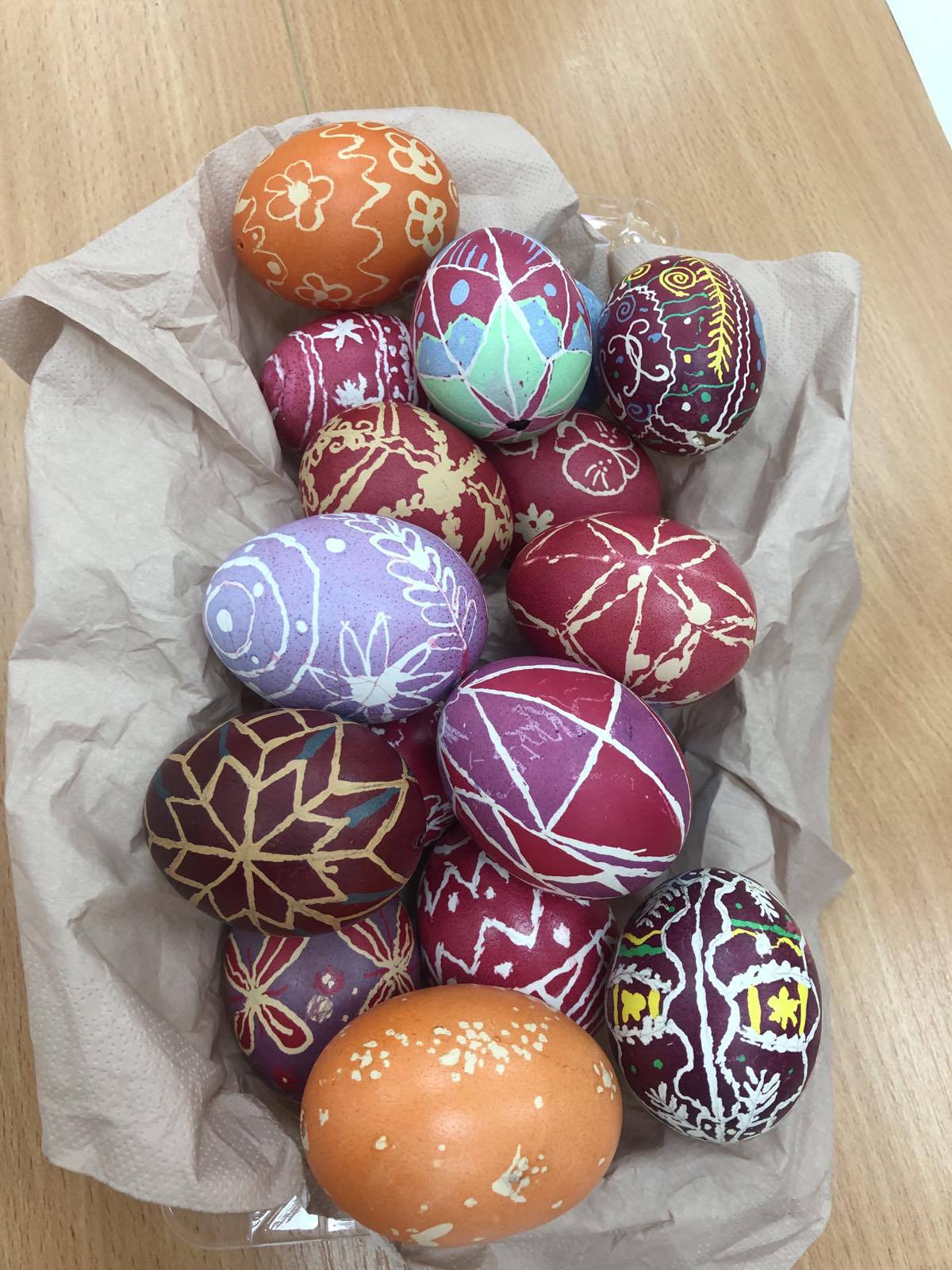 Цьогорічний ранок розкрашування яєць був наповнений справді святковою атмосферою. Класні кімнати тимчасово перетворилися на ремісничі майстерні, де учні хапали пензлі, фарби, серветки, віск, різні декоративні вироби. На додаток до традиційних технік, таких як брашінг або воскова епіляція, були використані сучасні творчі рішення.