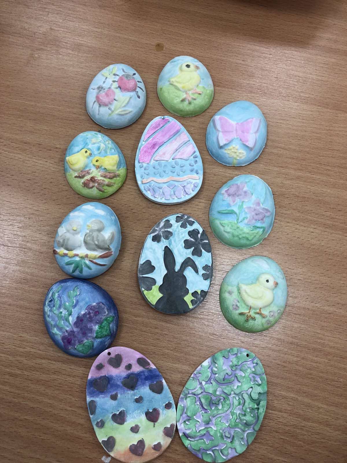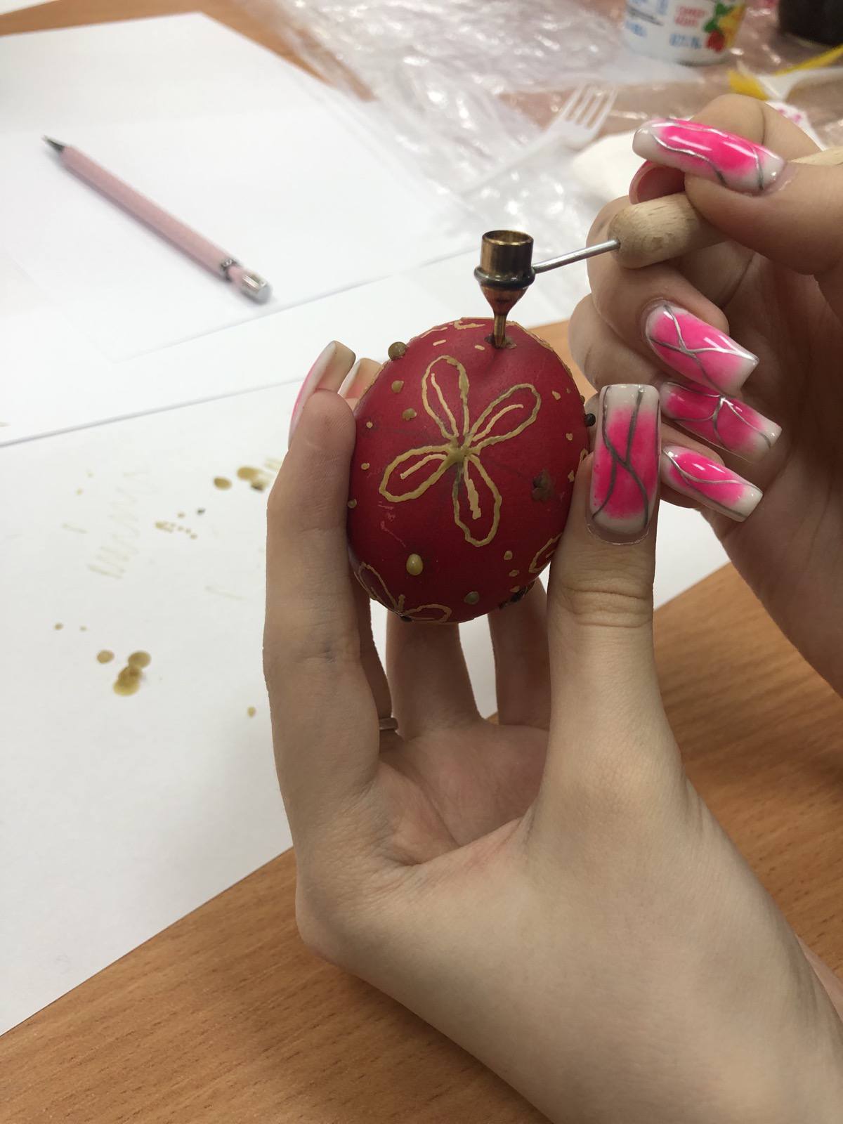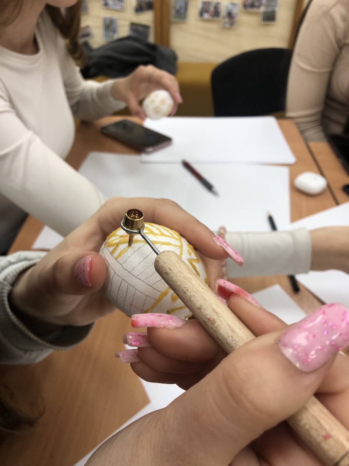 Цьогорічний ранок розкрашування яєць був наповнений справді святковою атмосферою. Класні кімнати тимчасово перетворилися на ремісничі майстерні, де учні хапали пензлі, фарби, серветки, віск, різні декоративні вироби. На додаток до традиційних технік, таких як брашінг або воскова епіляція, були використані сучасні творчі рішення.
